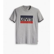 Kerek nyakú, rövid ujjú férfi póló. Szürke alapon, elöl zászlómintázattal Levi’s® felirat. Anyagösszetétel: 100% pamut